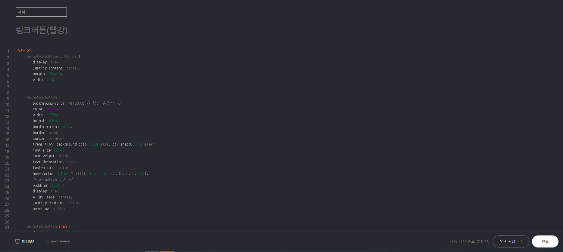 자주 쓰는 버튼 스타일을 티스토리 서식으로 저장해두면 글 쓸 때마다 매번 코딩할 필요가 없어요! 버튼을 무료로 디자인할 수 있는 일반적인 무료 사이트는 CSS버튼 자동생성기입니다. 여기서 쉽고 빠르게 무료 링크 버튼을 만들어 볼 수 있습니다.